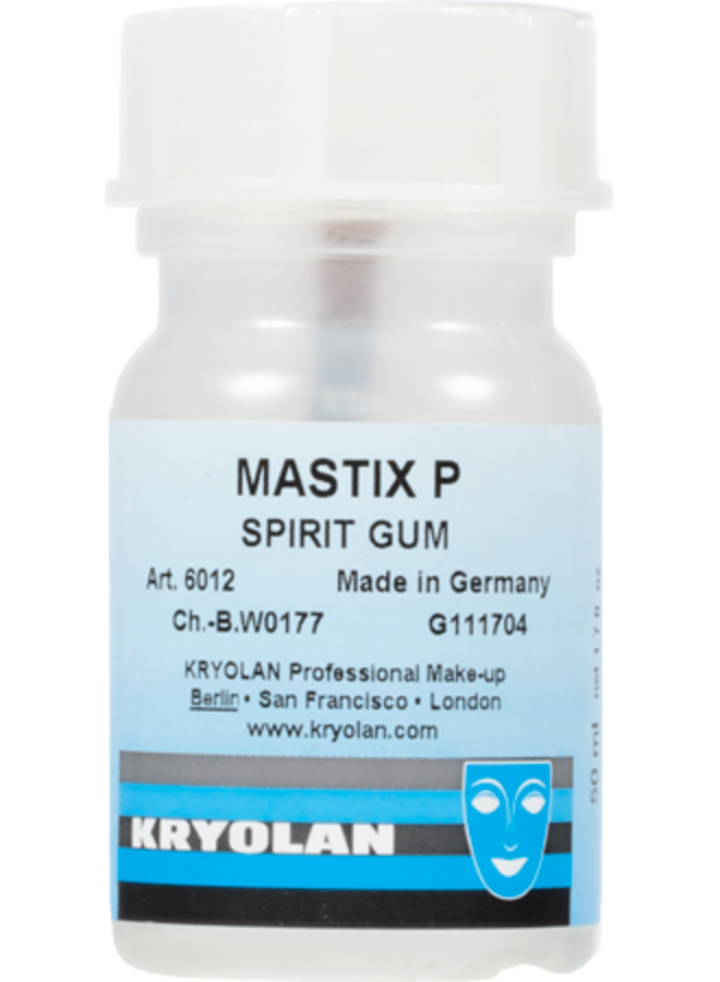 Mastix P Spirit Gum is een zeer sterk synthetisch kleefmiddel voor de bevestiging van onder meer (Sinterklaas)baarden, snorren en pruiken. Deze lijm is zweetbestendig. Ook raden we Mastix P aan als blijkt dat andere lijmen een wit residu achterlaten door een hoge luchtvochtigheid.
