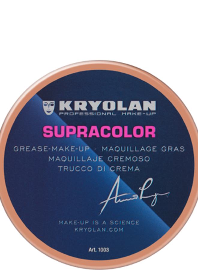 Supracolor is een cream make-up die al decennia zeer geliefd is. Professionele grimeurs en visagisten kunnen eigenlijk niet zonder Supracolor. De foundation dekt zeer goed, heeft een grote huidtolerantie en is leverbaar in honderden kleuren. Supracolor wordt niet alleen gebruikt voor een duurzame dag make-up, maar ook voor kleurrijke effecten. Zeer geschikt voor shaden en highlighten.